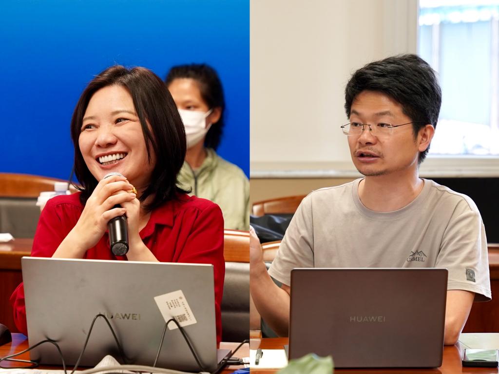 教務處副處長周明桔(左)作政策解讀,副院長鄭家新(右)主持項目研討