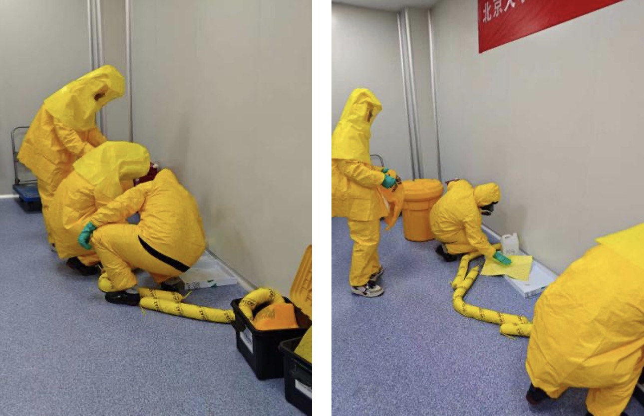 為全面提升實驗室突發(fā)事故應(yīng)急處置能力,響應(yīng)學(xué)校新學(xué)年實驗室安全準(zhǔn)入工作部署,2025年9月17日,總務(wù)處設(shè)備與實驗室管理辦公室、新材料學(xué)院聯(lián)合舉辦實驗室酸堿化學(xué)品泄漏應(yīng)急演練。