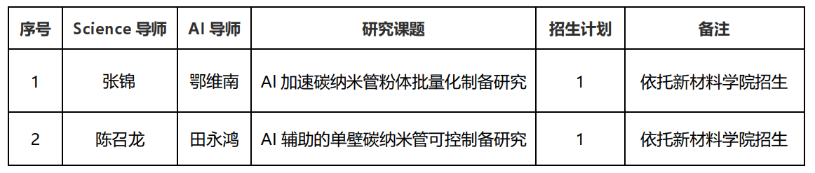 表1 依托新材料學(xué)院招生的AI4S專項(xiàng)博士計(jì)劃導(dǎo)師及研究課題