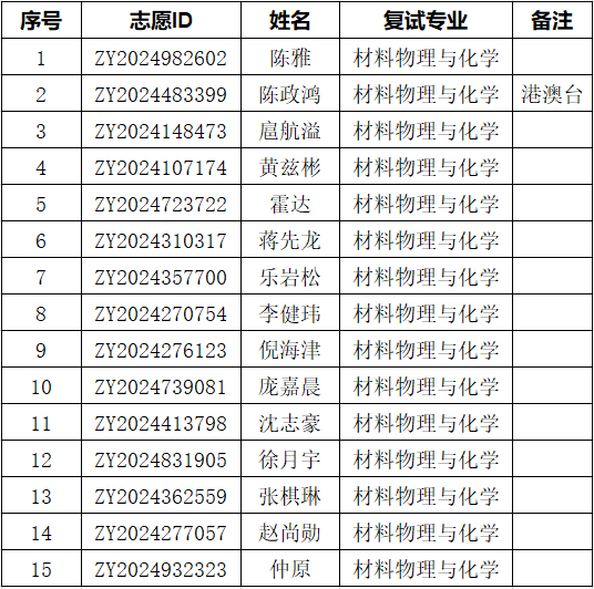 附表: 新材料學(xué)院2025年“申請(qǐng)考核制”博士研究生招生復(fù)試名單