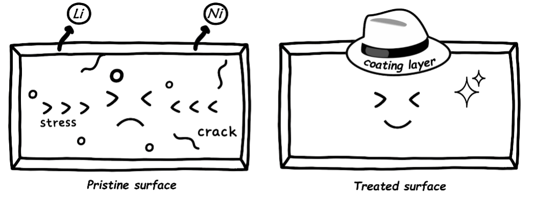 鋰離子電池(LIB)因其高能量密度、長循環(huán)壽命等優(yōu)勢,已被廣泛應(yīng)用于便攜式電子設(shè)備與電動汽車領(lǐng)域,是目前最成功且商業(yè)前景最廣闊的可充電電池體系之一。為進一步提升鋰離子層狀正極材料的能量密度并降低成本,提高鎳含量已成為主流技術(shù)路線。然而,隨著鎳含量的增加,該類材料對空氣中的水和二氧化碳更為敏感,其表面反應(yīng)生成的雜質(zhì)會導(dǎo)致電池能量密度下降、結(jié)構(gòu)退化以及一系列安全隱患。目前,大多數(shù)研究聚焦于材料與空氣分子之間的表面化學(xué)反應(yīng)機理,而忽略了水解產(chǎn)生的質(zhì)子對材料表面結(jié)構(gòu)與性能的侵蝕作用。