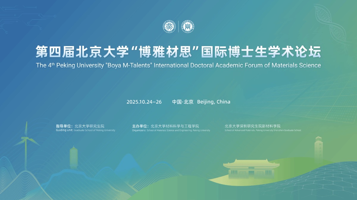 第四屆北京大學(xué)“博雅材思”國際博士生學(xué)術(shù)論壇將于2025年10月24日-26日在北京大學(xué)新燕園校區(qū)舉行。本屆論壇匯聚了來自國內(nèi)外頂尖高校的數(shù)百名優(yōu)秀材料學(xué)科博士生,他們將圍繞材料領(lǐng)域最新研究展開深入的學(xué)術(shù)交流。