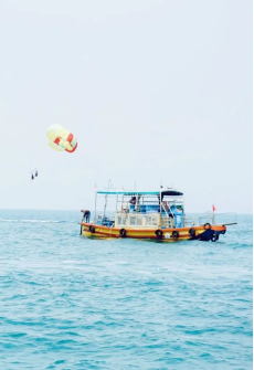 第二站【觀海致遠】,海風吹我衣,漁船搖不已。 海灣漁民領我行,同學共乘踏浪聲。 捕魚為樂增實力,協(xié)作為懷展志氣。