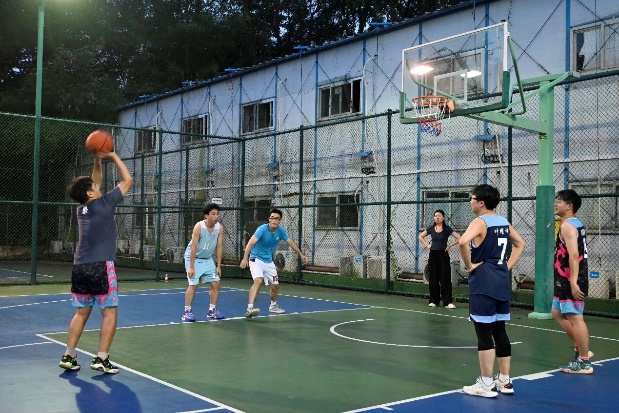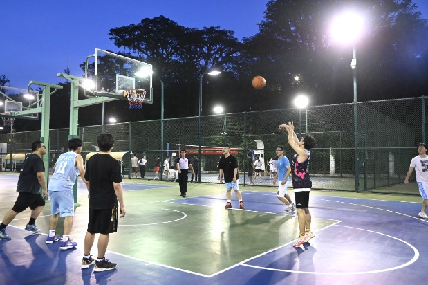 本次比賽共分為“三分賽”、“單挑賽”、“友誼賽”三場(chǎng)比賽。比賽在一片熱烈的掌聲中拉開帷幕,新材料學(xué)院丁柏昕老師為比賽開球,籃球在空中劃出優(yōu)美的弧線,象征著畢業(yè)學(xué)子的前途坦蕩、前程似錦。隨后比賽正式開始。