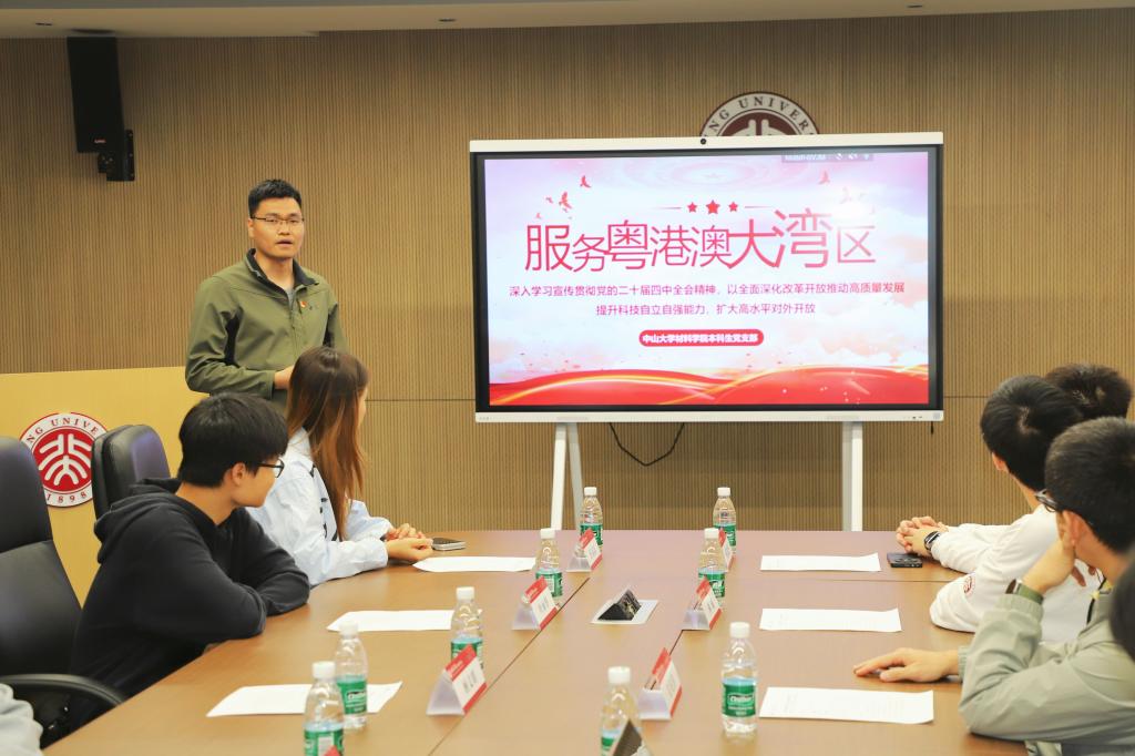 參觀結(jié)束后,雙方師生共同參加專題微黨課學(xué)習(xí)。在中山大學(xué)材料學(xué)院本科生黨支部書(shū)記顧文明的領(lǐng)學(xué)下,與會(huì)人員深入學(xué)習(xí)了黨的二十屆四中全會(huì)精神,并結(jié)合習(xí)近平總書(shū)記對(duì)粵港澳大灣區(qū)建設(shè)發(fā)展、科技自立自強(qiáng)等重要論述進(jìn)行研討。顧文明闡述了材料科技工作者在服務(wù)國(guó)家重大戰(zhàn)略需求、支撐粵港澳大灣區(qū)高質(zhì)量發(fā)展中的責(zé)任與使命。通過(guò)回顧師昌緒、林蘭英等老一輩科學(xué)家科技報(bào)國(guó)、艱苦攻關(guān)的感人事跡,以及分享兩校材料學(xué)科優(yōu)秀青年學(xué)子的創(chuàng)新實(shí)踐,黨課生動(dòng)詮釋了“科技報(bào)國(guó)、追求卓越”的精神傳承。顧文明強(qiáng)調(diào),新時(shí)代的材料學(xué)子應(yīng)自覺(jué)將個(gè)人理想融入國(guó)家發(fā)展大局,立志在關(guān)鍵材料領(lǐng)域攻堅(jiān)克難,為實(shí)現(xiàn)高水平科技自立自強(qiáng)貢獻(xiàn)青春力量。