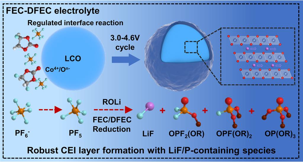 新材料學(xué)院潘鋒/趙慶賀團(tuán)隊(duì)在設(shè)計(jì)高電壓鈷酸鋰電池電解液實(shí)現(xiàn)穩(wěn)定的電極界面相構(gòu)建取得重要進(jìn)展