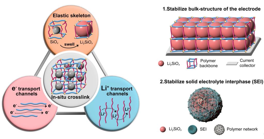 學(xué)院潘鋒/楊盧奕團(tuán)隊(duì)在研發(fā)同時(shí)具有導(dǎo)電子與離子的彈性聚合物網(wǎng)絡(luò)的鋰電池取得進(jìn)展