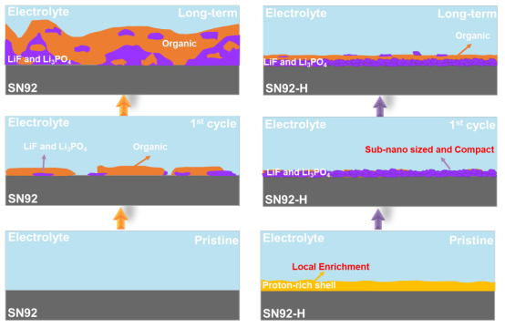 學(xué)院潘鋒團(tuán)隊(duì)基于富質(zhì)子界面的原位轉(zhuǎn)化形成致密無(wú)機(jī)殼層開(kāi)發(fā)了高性能的三元鋰電池正極材料